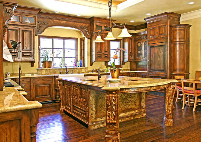 Kitchens designed with a tip of the hat towards particular cultures or simple theatricality.